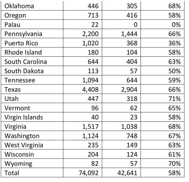 從National Conference of Bar Examiners所獲得的2016年統計數據來看,全國所有參加的應考者總共有58%的人通過考試,而在紐約州和加州則各有57%和40%的通過率。