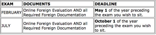 首先,大部分報名NY BAR的小夥伴都具備一個美國以外的法律學位,和一個正在念的LLM學位。而NY BAR要求LLM的考生,必須要經過NY BAR Board的Advance Evaluation of Eligibility才能報名紐約州律師考試,NY BAR Board建議考生在考試前的一年到六個月之前,就可以上網做這個評估並且繳交所有需要的文件。預計在明年七月參加考試的小夥伴,根據官方說明,今年10/1之前就必須要繳交這些文件。