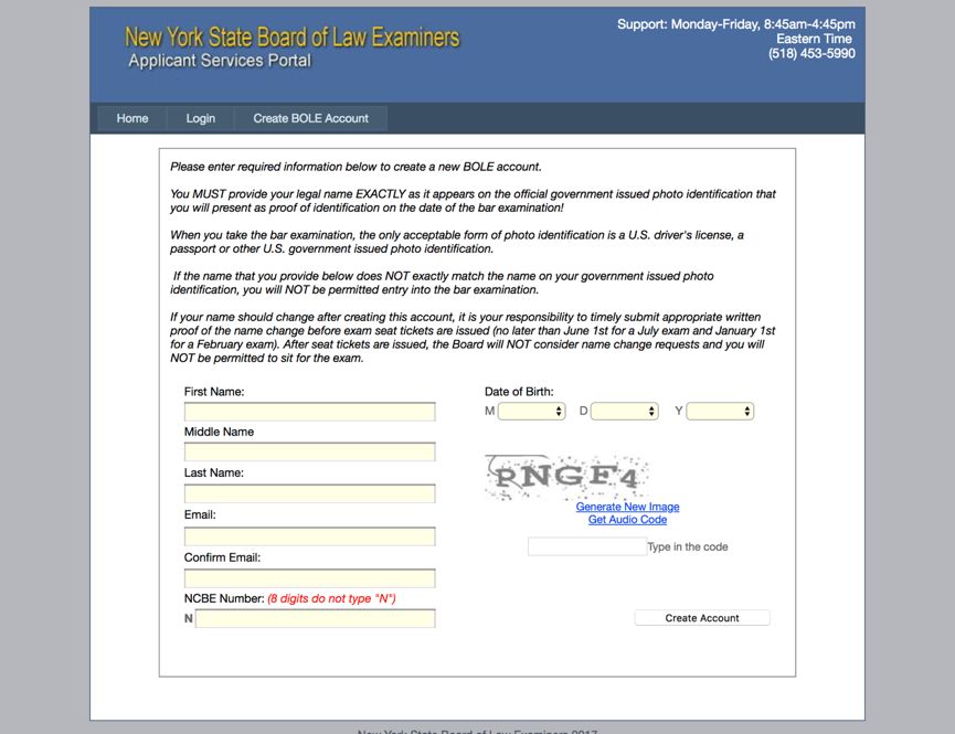 輸入個人信息以及NCBE Number,建立自己的BOLE account。