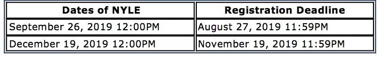 下表是2019的NYLE考試時間,這個考試只要在申請宣示admission之前考完就可以了,所以各位小夥伴如果真的沒有時間,在念完LLM之後再考也是可以的喔!